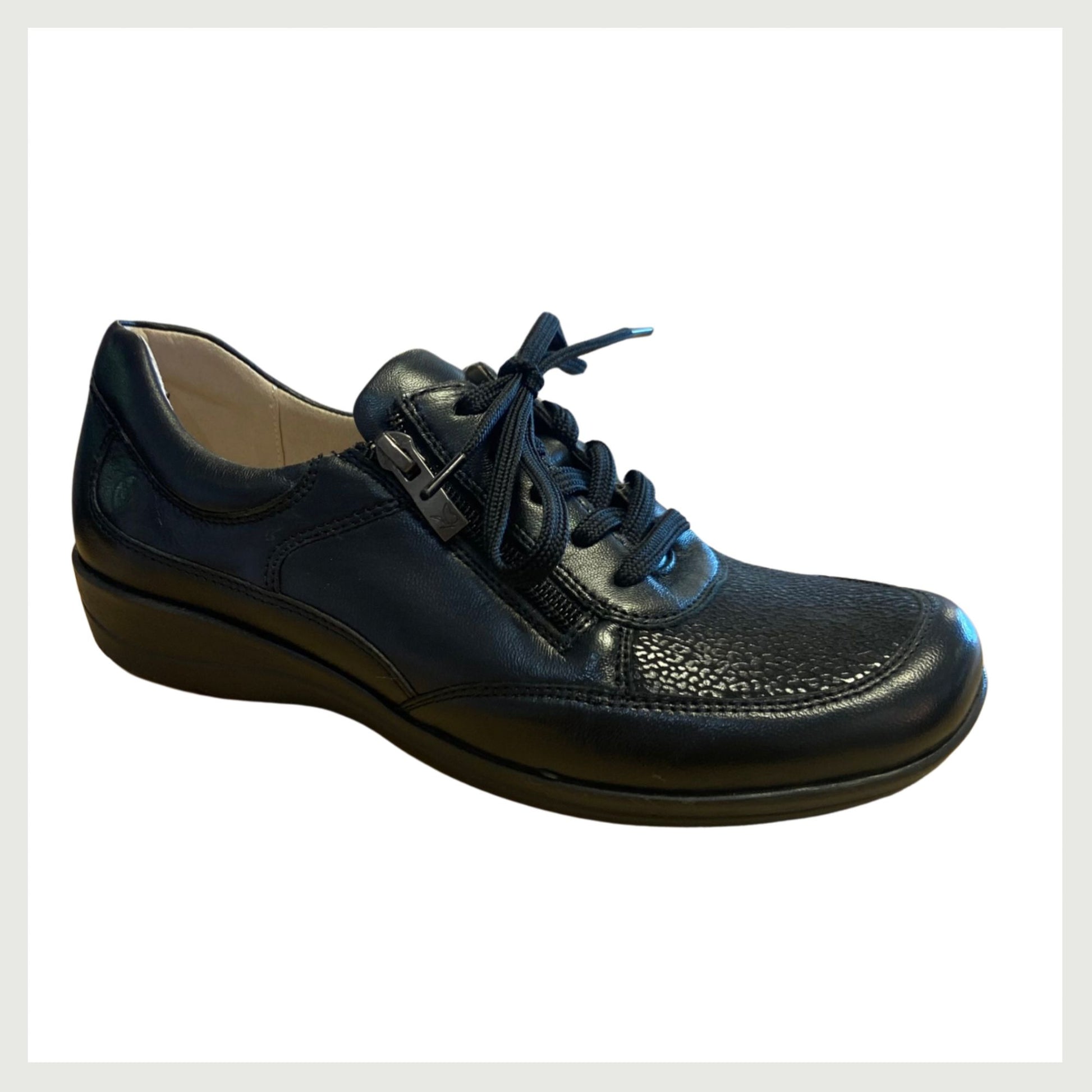 Comfortable every day shoe in the wider fitting from Caprice. Super stretchy leathers allow your feet a greater degree of all day comfort not found in other brands, light weight flexible and wider fit with leather insoles gives you a brilliant versatile option.These sneakers style shoes have a lace and zip for easy on/off.