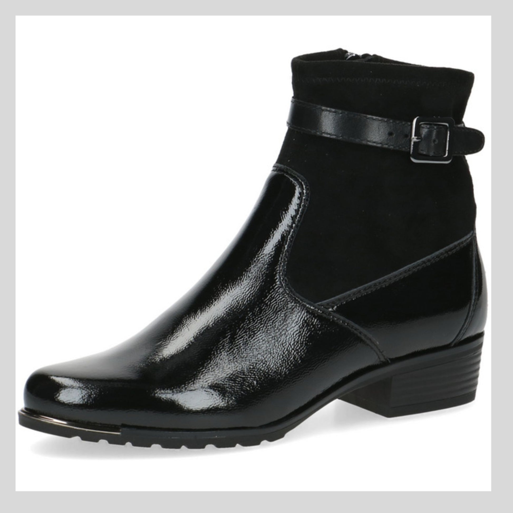 Beautiful black Patent leather boot from Caprice. Low heal ideal for everyday wear.
