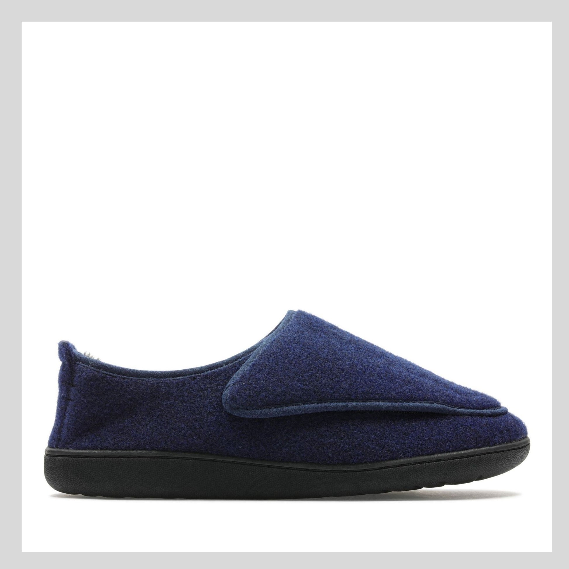 Cosy and contemporary, King Riptape is an essential slipper for indoor comfort as temperatures drop. Crafted from navy felt, side-stitched construction gives a lightweight, flexible feel, and the durable sole offers reliable traction indoors. Finished with a faux fur lining for added warmth and a wide riptape fastening for a secure fit that’s easy to get on and off.