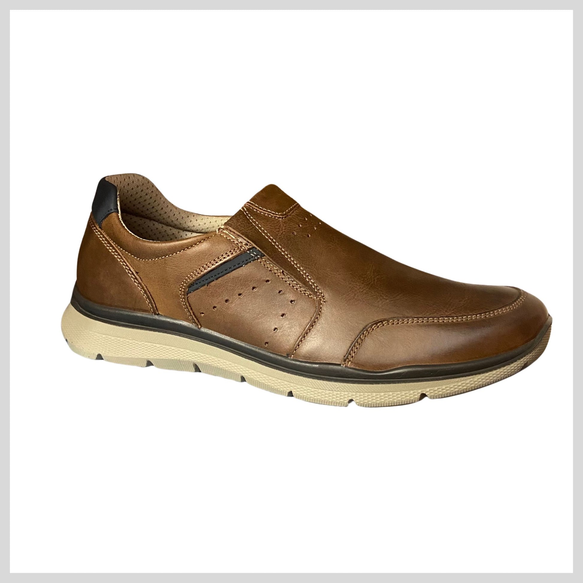 Stylish men's shoe by Imac with soft natural leather uppers and breathable lining with anatomic last and arch support. Light and flexible Pu Sole. Padded and removable insole with supporting heel counter. This sleek design is perfect for both casual and semi-formal occasions, keeping you comfortable and fashionable all year round.