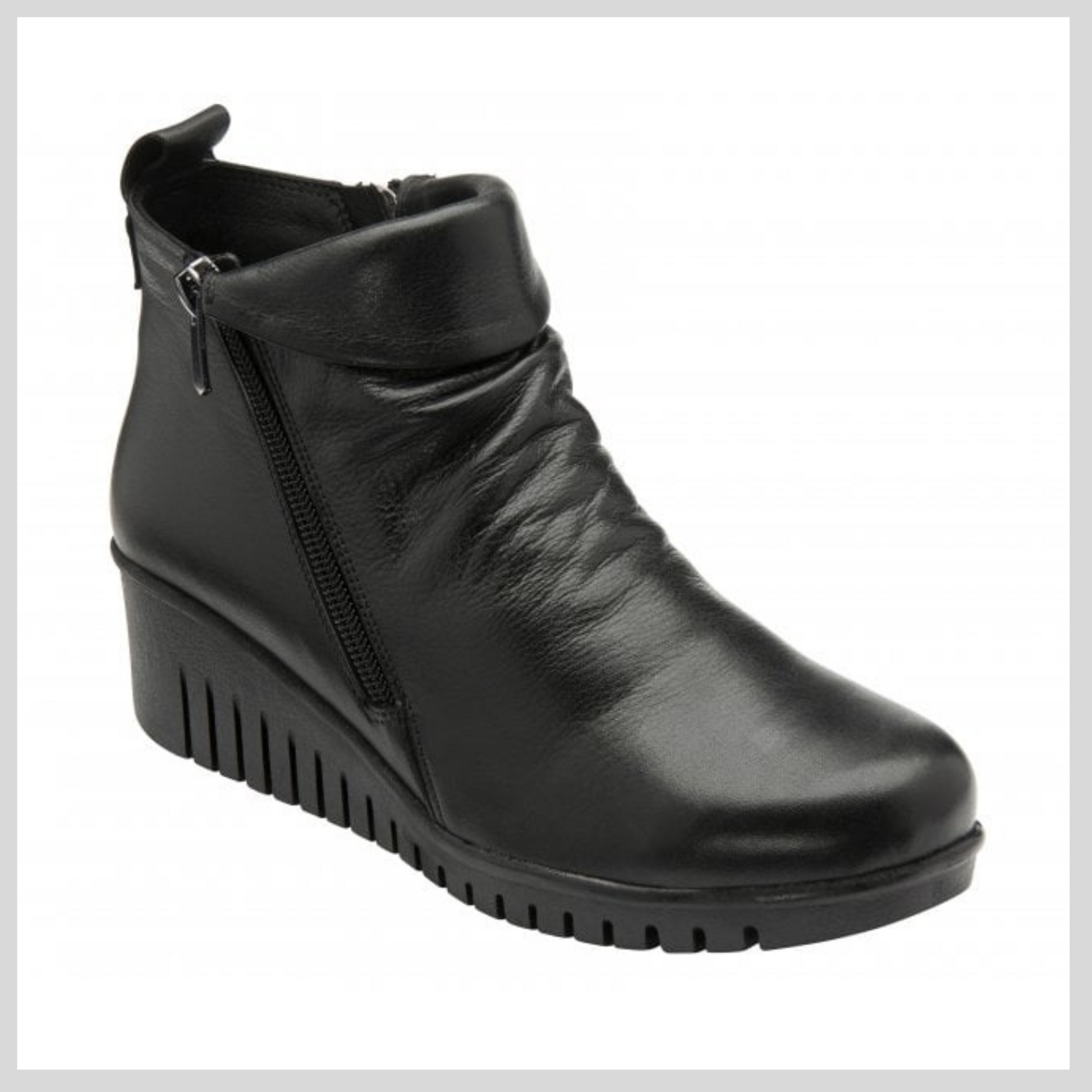 Exceptionally comfortable and a true delight to wear is the Lotus Cordelia ankle boot. This understated navy boot is constructed from premium leather with subtle ruche detailing on the upper. As well as incorporating an exposed side zip and a turn down collar, this women’s navy leather ankle boot rests on a 4.5cm wedge heel. The Lotus Cordelia boot really is the perfect accompaniment to casual looks.