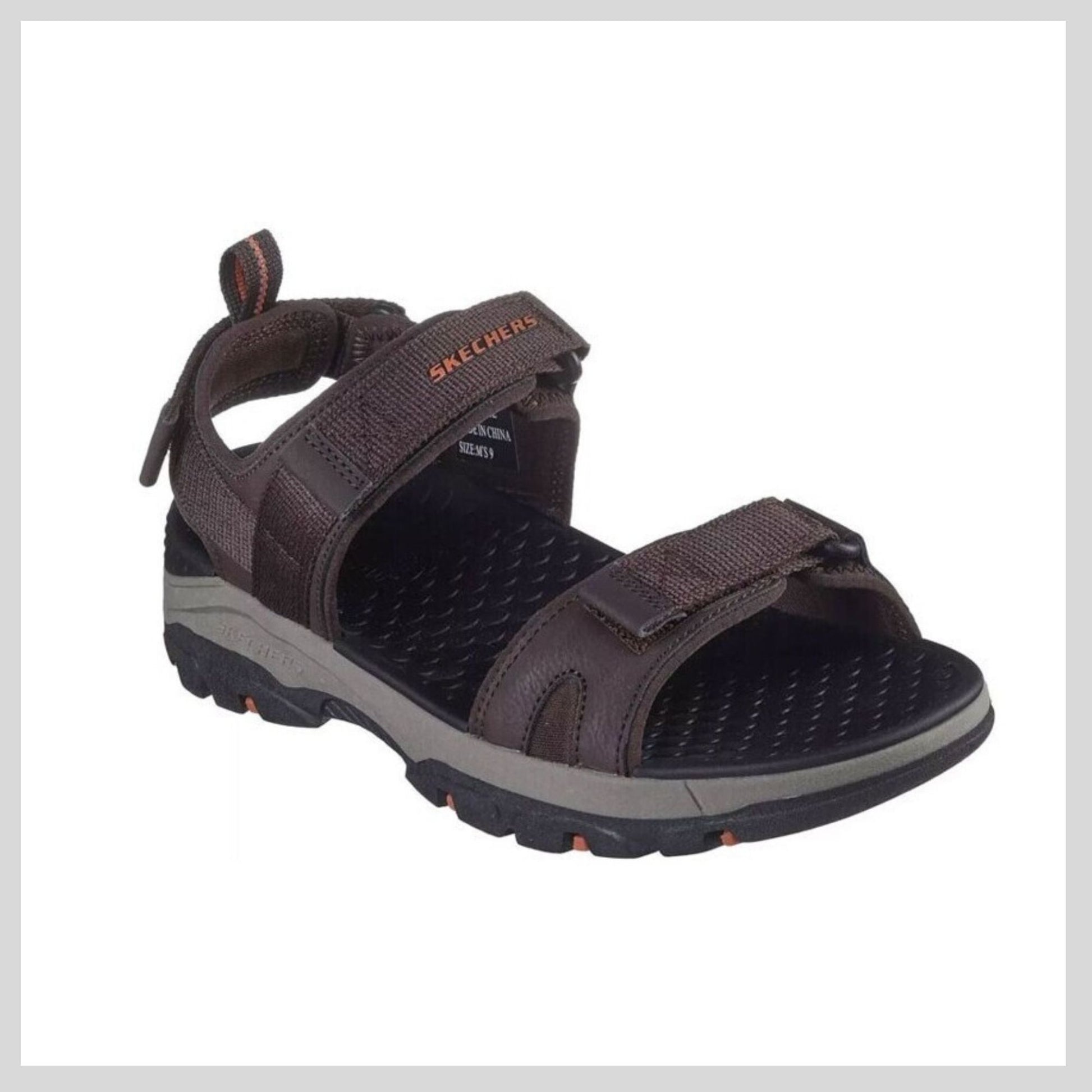 Travel all day in long-lasting comfort with the Skechers Tresmen sandal. This Relaxed Fit open-toe sandal features a durable synthetic upper with a cushioned Luxe Foam footbed, and a hook and loop ankle-strap closure.