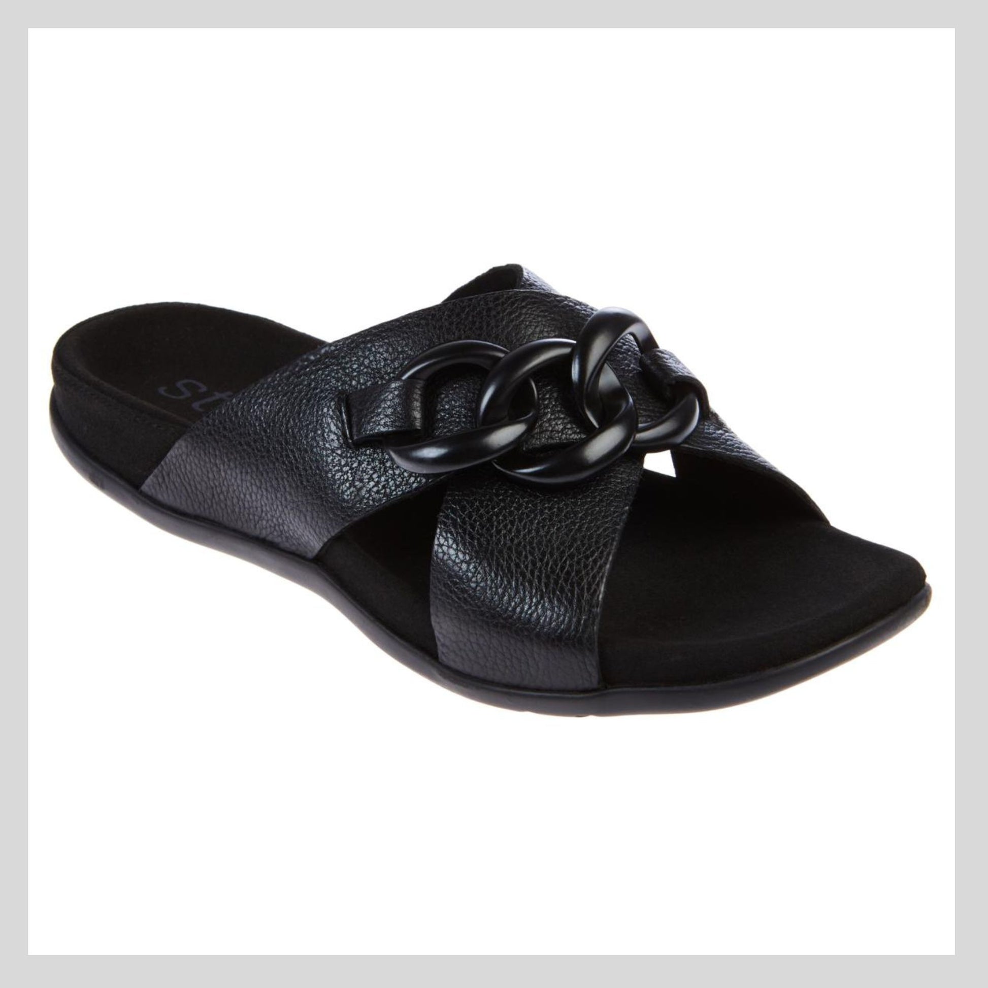 This timeless classic silhouette will become a new favourite for your summer wardrobe. Wide leather crisscross straps offer dignified foot coverage and are simple to slip on and off.