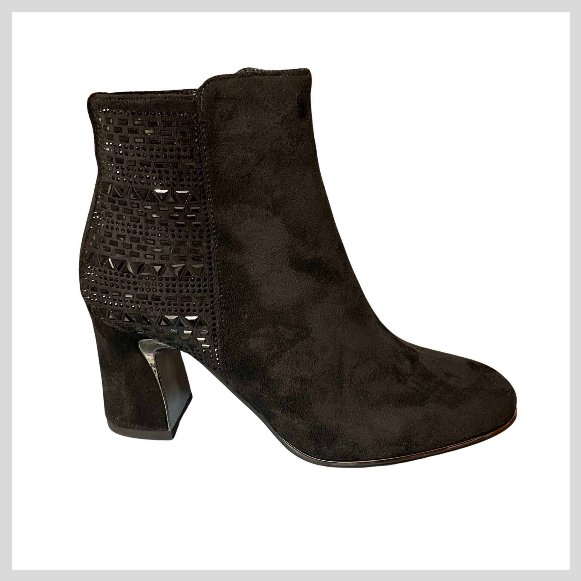 Ladies diamonte dressy ankle boot. These boots are stylish and comfortable. Block heel, with suede uppers decorative side panel. Zip for easy on/off.